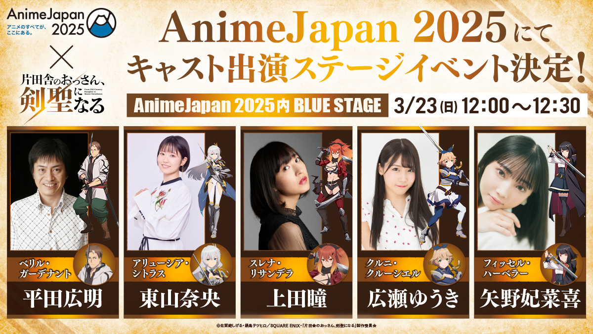 2025年3月23日(日) 、AnimeJapan 2025のNBCユニバーサル・エンターテイメントブース[J14]にて、「片田舎のおっさん、剣聖になる」スペシャルステージが開催!