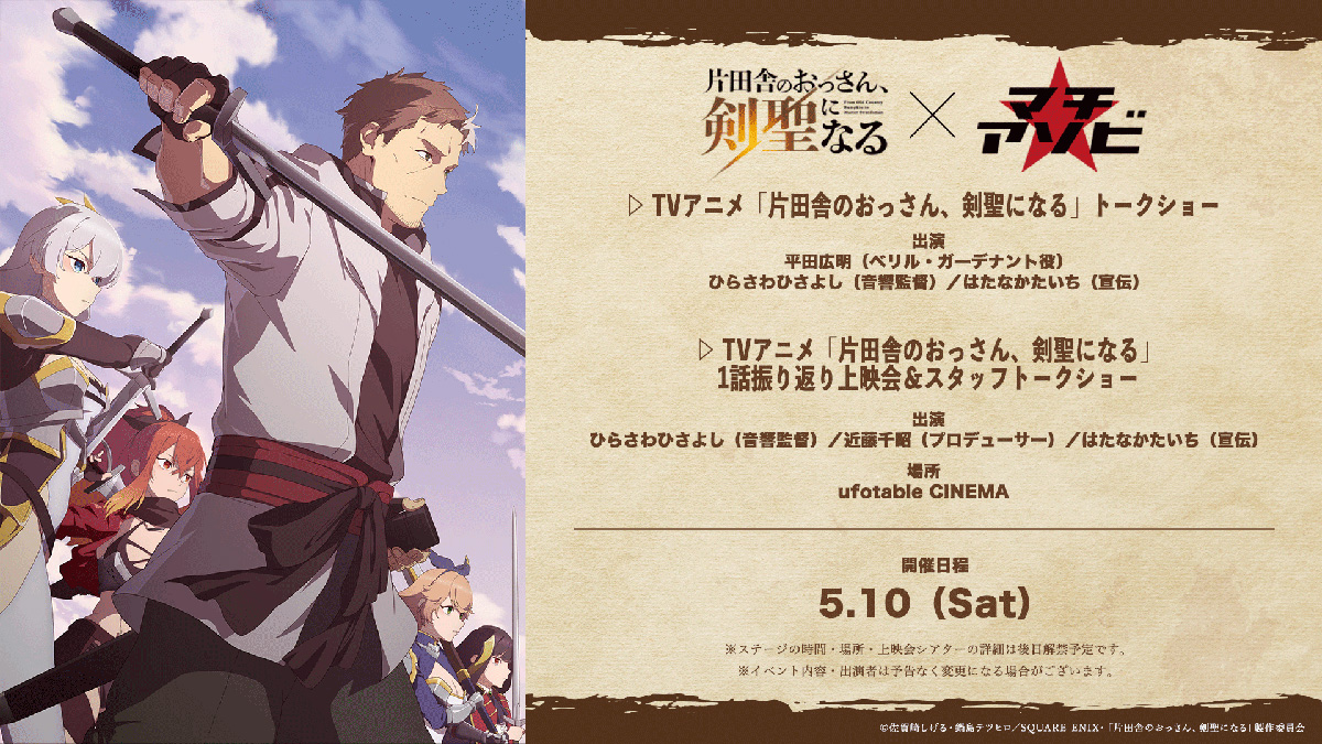 | 【タイトル】 | TVアニメ「片田舎のおっさん、剣聖になる」1話振り返り上映会&スタッフトークショー |