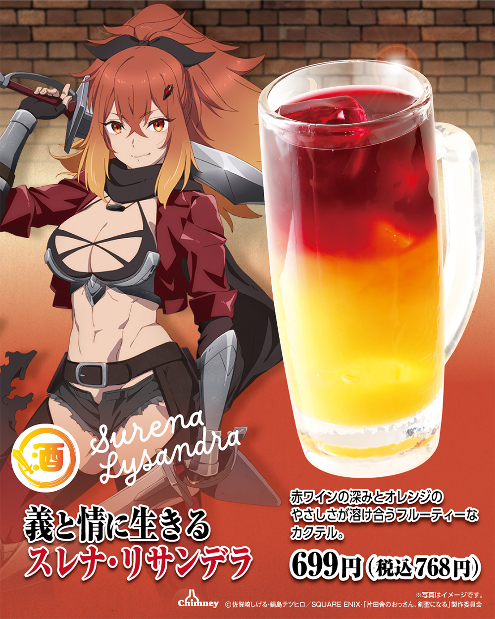 スレナ・リサンデラ 699円(税込768円) 赤ワインの深みとオレンジのやさしさが溶け合うフルーティーなカクテル。