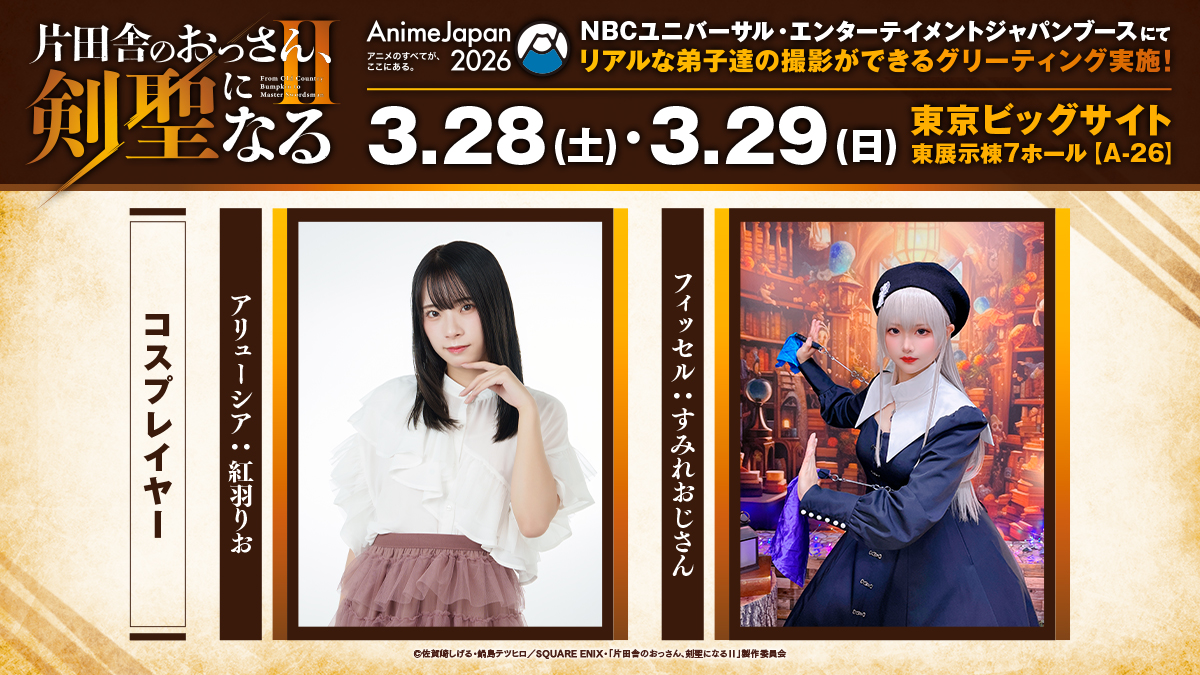 3月28日(土) ・29日(日)開催の「AnimeJapan 2026」NBCユニバーサル・エンターテイメントジャパンブースにて、アリューシア:紅羽りおさん・フィッセル:すみれおじさんのコスプレイヤーグリーティング実施決定!